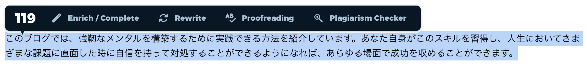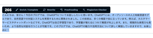 文字を選択してリライトボタンを押すだけでリライトが実行されます。